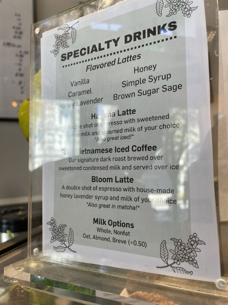 Our classic Claremont Blend dark roast brewed over sweetened condensed milk and served over ice. No milk substitutions available for this item. Cannot be made less sweet