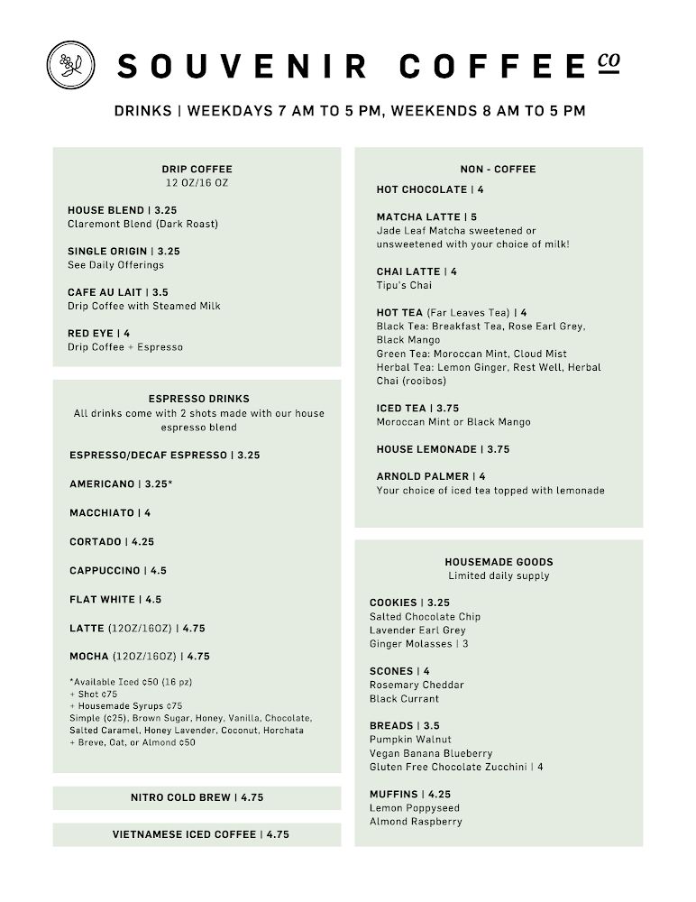 Located in the heart of San Francisco, Souvenir Coffee is a charming coffee shop known for its exceptional coffee and cozy atmosphere. The menu features a variety of specialty drinks, including a delicious white mocha with oat milk and a perfectly balanced matcha latte sweetened with vanilla syrup. Customers rave about the quality of the coffee and the inviting ambiance of the café, complete with vintage furniture and plenty of outdoor seating. With free WiFi and a selection of freshly baked pastries, Souvenir Coffee is the perfect spot for enjoying a relaxing cup of coffee or getting some work done. Whether you're a coffee aficionado or just looking for a cozy café to unwind, Souvenir Coffee is a must-visit destination in San Francisco.